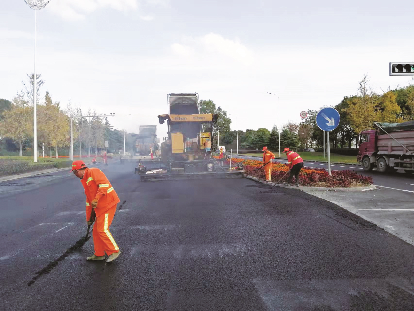 该项目总投资6800万元,改造后原路面抬高17厘米。为有效减少重车在各灯控路口产生车辙病害,该项目引进了灌入式抗车辙路面技术,进一步提高行车安全性及舒适性。